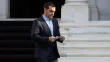 Le leader des Grecs indépendants, Panos Kammenos, sortant ce matin des locaux de Syriza, après avoir négocié un accord avec Alexis Tsipras/ Crédits photo : LOUISA GOULIAMAKI/AFP