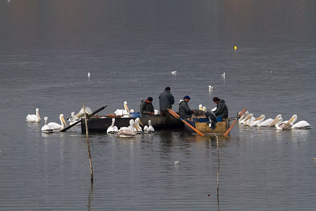 La forêt inondée qui ceint le lac ne compte pas moins de 10 espèces rares d'oiseaux comme le pélican frisé (Pelecanus crispus) et 300 espèces "courantes" ont été enregistrées. Ainsi aux abords du lac on aperçoit des cormorans, des hérons, des cigognes mais aussi des rapaces qui nichent sur les monts environnants.