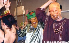 Nous sommes pour l'instant dans les sous-sols d'une église à l'extrémité du quartier chinois de Paris. Spécialité française, l'église n'a que le nom et la façade pour elle, pour le reste, il s'agit d'une fourmilière associative, autre spécialité française où dès que cinq personnes se réunissent pour une partie de pétanque, ils pensent d'abord à créer une association. Enfin, pas plus étonnant que d'entendre du grec ancien au cœur de ce quartier asiatique, lui-même formant un des plus gros arrondissements de Paris. Puisque finalement, ce sera notre oreille qui nous servira de guide dans le dédale de salles du complexe associatif. Ce dimanche après-midi, jour de la Pâque chez les Grecs, c'est la répétition des chœurs. On s'attend à trouver quelques têtes d'étudiants au teint pâle, des rats de bibliothèque en quelque sorte. Surprise, nous tombons devant un joyeux groupe d'enfants qui porte fièrement sa grenouille colorée sur la coiffe et se presse autour des acteurs cachés derrière leurs masques.