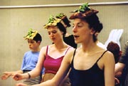 "L'étudiant reste assis. Il ne chante pas, il ne parle pas", nous explique Philippe. "Beaucoup de comédiens du chœur sont des gens qui n'ont jamais parlé, ni appris le grec ancien, ou qu'ils l'apprennent en amateurs". On constate facilement qu'ils prennent d'autant plus de plaisir à le chanter que pour la plupart il s'agit d'une véritable découverte… d'un trésor. Un peu comme Véronique Faux : "J'apprenais seule le grec ancien, en relation avec mon activité professionnelle, lorsque j'ai rencontré Philippe Brunet dont j'ai alors suivi les cours. En 1997, j'ai assisté à l'une des représentations d'Agamemnon et ce fut le coup de foudre pour cette langue si belle, un choc si violent que j'en ai été émue aux larmes". Voilà comment après quelques années passées dans le choeur à scander et à chanter, on devient présidente de Démodocos.