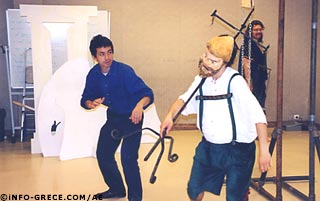 Et pourtant, c'est un travail qui reste quasiment inconnu des Grecs de France et encore plus ignoré en Grèce. "Il y a quelques Grecs qui collaborent, qui nous aident", corrige Philippe. Anastassios Koutsoukos, ancien étudiant en France et actuellement enseignant de Lettres à Chalcis, assure le lien avec la Grèce en tant que vice-président de la troupe. "On a pu aller quelques fois en Grèce. En 1996, nous avons joué à Rethymnon et à Chania, puis grâce au soutien de l'Ambassade de France en Grèce, et de l'Unesco, notamment le président de la section du Pirée Ioannis Maronitis, nous étions le 29 novembre dernier au Pirée. La Compagnie grecque du Gaz naturel d'Athènes avait aussi soutenu notre pièce. De plus, nous avions eu l'honneur que l'attaché culturel de l'Ambassade de France en Grèce, Mme Fanny Aubert Malaurie représentant l'Ambassadeur Jean Maurice Ripert, introduise la manifestation à laquelle nous participions. Si nous arrivons à réunir les moyens nécessaires, nous allons essayer d'y retourner le 15 juin prochain à l'occasion du Festival International des Cultures du Monde, organisé par la section piréote de l'Unesco", conclue Philippe.