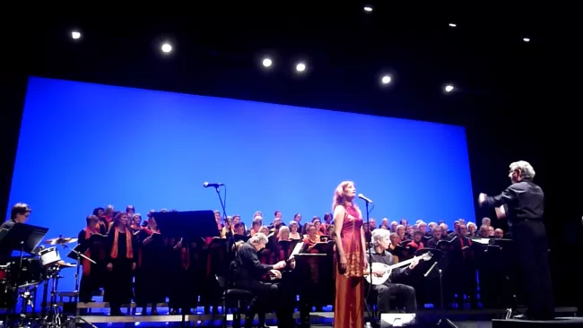 Canto general, le poème de Pablo Neruda mis en musique par Mikis Theodorakis, par Les Chemins de la Voix, le Choeur du Canto, 80 choristes finistériens, sous la direction de Jean Golgevit.