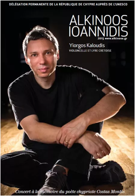 Découvrir les compositions d'Alkinoos, ses rêves et ses croyances, c'est entrevoir l'union de ses origines chypriotes et grecques, le mélange de ses influences classique, rock et byzantine, et apprécier le timbre particulier de sa voix et ses interprétations. L'artiste ouvre une fenêtre sur son pays, actuellement au centre d'un tourbillon économique et politique. A l'UNESCO, il se produira avec Yiorgos Kaloudis, son partenaire de scène privilégié, virtuose du violoncelle et de la lyre crétoise. Sa collaboration avec Yiorgos Kaloudis se compte en nombreuses années et en milliers de kilomètres. Après avoir traversé différents univers sonores, les deux musiciens se réinventent une esthétique commune autour de la liberté d'improviser et la joie de coexister, tout en respectant la simplicité et la franchise que permet la chanson. Leur programme musical met l'accent sur les tensions intérieures, les détails d'interprétation et l'espace du silence.