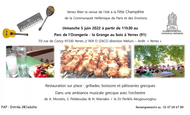 La Communauté Hellénique de Paris et des environs vous invite à sa grande fête champêtre annuelle dans le Parc de l'Orangerie, Grange au bois de la ville d'YERRES (91)