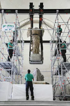 La Victoire de Samothrace, monument spectaculaire de la sculpture grecque, a bénéficié d’une restauration exceptionnelle. Commencée en septembre 2013, sa restauration s'est terminée fin 2014. Cette restauration d’envergure devait permettre d’améliorer l’assemblage du monument et de nettoyer les différents marbres utilisés dans sa réalisation. La statue de la Victoire a été descendue de sa base et les vingt-trois blocs qui composent la base et le socle ont été ensuite démontés un à un.