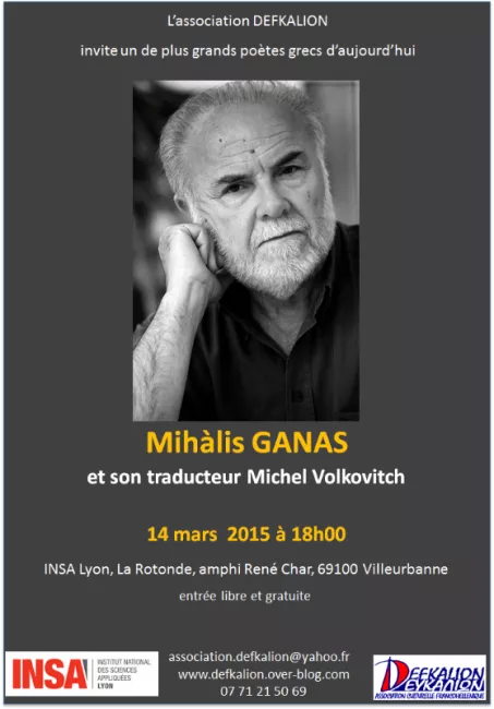 Le poète grec Michalis Ganas et son traducteur Michel Volkovitch sont les invités de l'Association Defkalion à Lyon dans le cadre du 17ème Printemps des Poètes.
