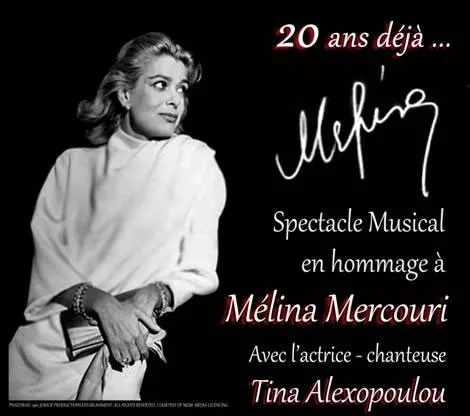 Spectacle musical Tina Alexopoulou et ses musiciens. Le spectacle « 20 ans déjà… Mélina », a été créé pour le vingtième anniversaire de sa disparition et il retrace le parcours artistique et culturel de cette femme d'exception. Il a été présenté pour la première fois à Paris, au Théâtre La Reine Blanche, le 6 mars 2014. Depuis, il a fait la tournée à plusieurs villes en France et en Grèce: Paris, Nantes, Athènes, l’ile de Samos/Grèce, Marseille, Nice, Saint Germain en Laye et Evry.