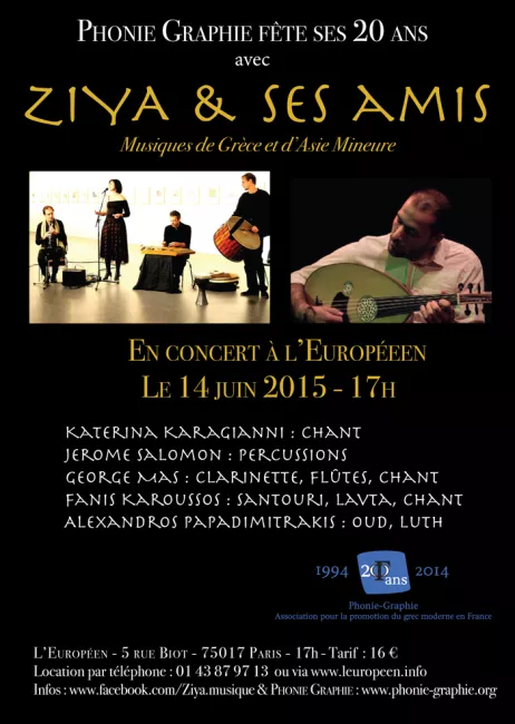 Ziya ou la musique dansante de la Grèce avec son large panel de sonorités ! Le programme de cette formation réunit différentes traditions de la chanson grecque : les «Dimotika» de la Grèce continentale de tradition villageoise, les chants de la Grèce du Nord de sonorité joyeuse et plus balkanique, et les «amanès» d'Asie Mineure aux couleurs citadines et aux influences plus orientales.