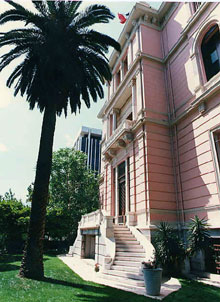 "Vrai ?" Demande-je à son Excellence l'Ambassadeur, une fois arrivé dans son bureau. L'homme ne s'empresse pas de répondre, ni à entonner le cocorico. Mesuré, il assure que "comme les Grecs, nous serons prêts au dernier moment. Mais prêts, le 15 juin". Puis il explique que l'idée est venue du maire d'Athènes, Dora Bakogiannis, qui la lui a suggéré à son arrivée, nouvellement nommé à Athènes en septembre 2003. Il est vrai que la façade de ce joyau néoclassique qui jadis donnait le ton à l'Athènes élégante avait besoin d'un coup de jeune et l'occasion des JO d'Athènes s'y prêtait. "Le temps que les crédits arrivent, nous n'avons pu commencer les travaux qu'en début d'année", précise M. Delaye.