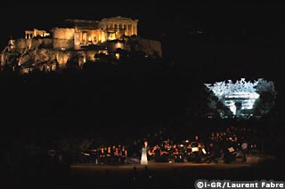 Pierre Bideau : L’éclairage précédent datait de 1959. Les projecteurs provenaient du spectacle de sons et lumières qui avait été monté sur l’Acropole à l’initiative d’André Malraux, alors ministre de la culture en France. Pierre Arnaud avait réalisé la mise en scène de ce spectacle. Clin d’œil de l’histoire, j’ai débuté dans la profession en travaillant au service de Pierre Arnaud de 1963 à 1967. Près d’un demi-siècle plus tard, l’élève vient reprendre l’œuvre du maître à Athènes !